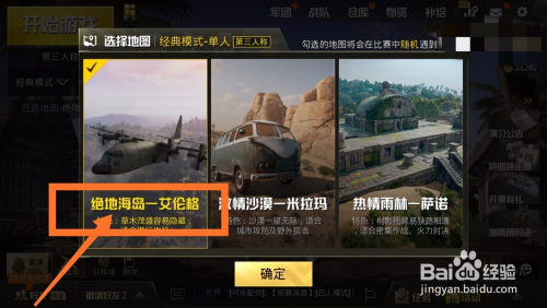 接着,我们将游戏人数设置为单人,地图只选择绝地海岛,只有绝地海岛地图有概率呈现日夜瓜代模式,具体设置如下图所示