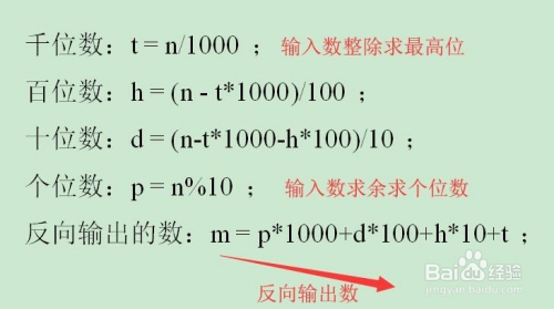 输入一个4位数,首先将它的列位数字拆分出来,然后将数字反标的目的输出,计较法则如下所示。