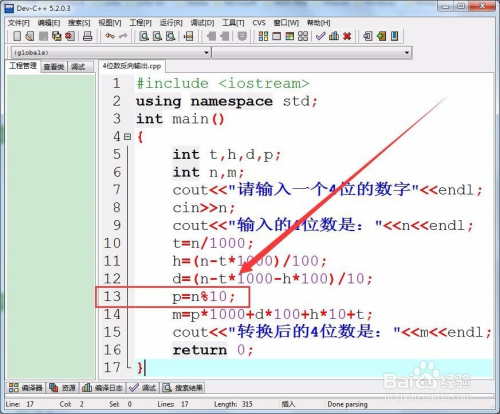 然后,用求余的体例计较数字个位上的数,保留在变量p中。