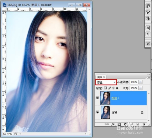 在图层面板将复制出来的图层改为“滤色”模式。