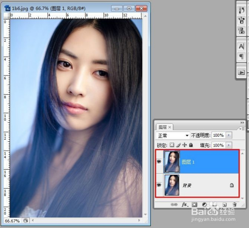 首先用Photoshop打开照片,然后按Ctrl+J将其复制一层。
