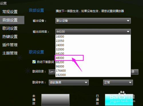 点击【输出采样率】,这里默认的就是44100就是CD音质。