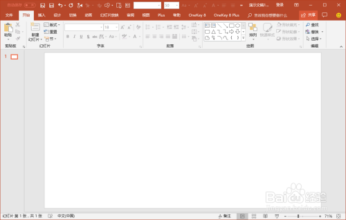 打开我们的PPT软件,新建一个PPT文档,进入到我们的PPT本家儿界面中。