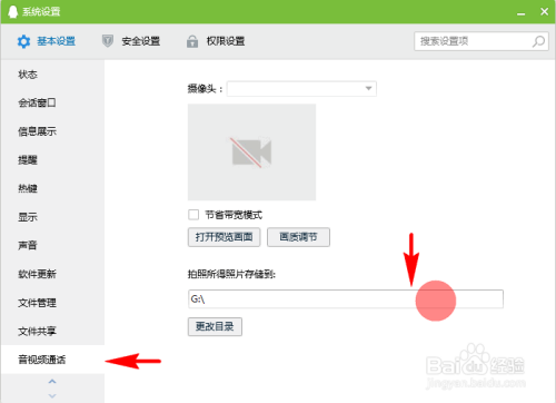 接着我们继续选择音视频通话功能,将摄影所得照片也选择保留到一个我们认为合适的系统盘C盘之外的其他磁盘中。