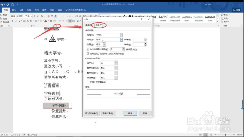 在高级选项卡傍边,我们可以设置字符的间距。都放在这个东西栏傍边有增年夜字号和减小字号,可以继续设置,还可以设置文字之间的间距。