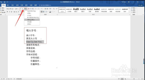 增年夜字号和减小字号,更改大小写选择需要的年夜写位置和小写位置。
