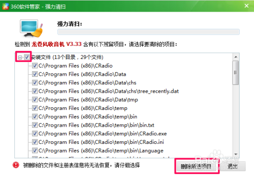 在强力清扫中勾选所有项目,然后点击右下角删除所有项目,到此软件就当作功的删除清洁了。