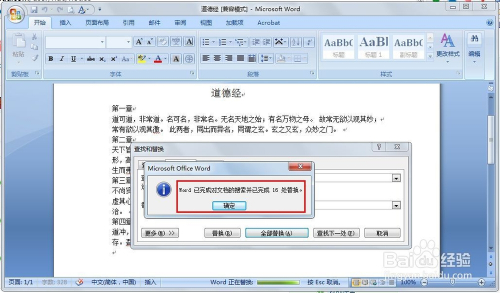 弹出窗口会显示替代了几多处,点击确定。