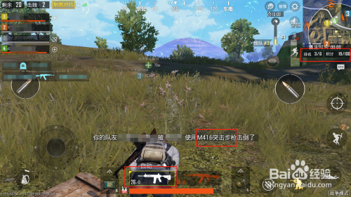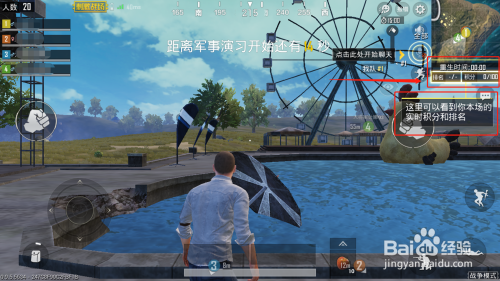 进入游戏后,右上角部门可以看到本场的及时积分和排名,玩家会自带兵器,落地开打,兵器模式随机呈现,无法选择,本家儿兵器为狙击自配4倍镜,若为全主动兵器则自配红点瞄具