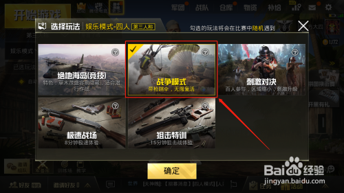 随后我们点击下方【已选弄法】,选择无限新生的【战争模式】,此模式按积分计较输赢,裁减敌手+3分,救援被击倒的队友+1分,最先获得指定积分的步队获胜,其余步队按照分数进行排名