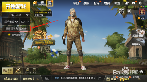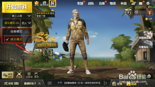 首先我们打开绝地求生.刺激战场APP,进入年夜厅界面后,我们先将游戏模式调整为【娱乐模式】