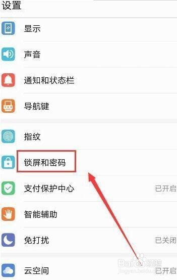 然后点击设置中的锁屏和密码,然后进入该设置中