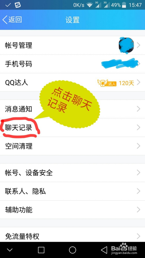 设置项里找到“聊天记实”点击