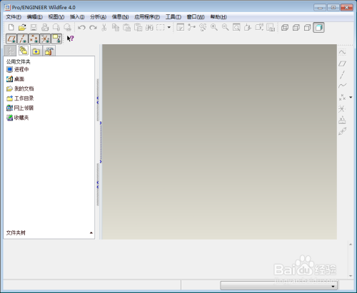 打开PRO/E4.0软件,展示在我们面前的就是PRO/E的画图本家儿界面