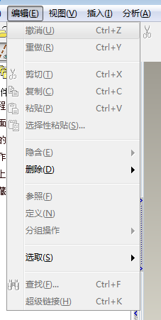 点击菜单栏中的编纂,可以看到有复制,粘贴,重做,剪切等号令。此刻因为没有在画图区绘制图形,所以看到的号令都呈灰色。