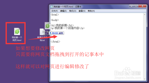 若是想要再次编纂代码时,打开一个记事本文件,然后将适才成立的网页直接