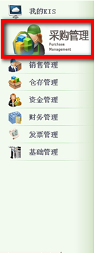 进入软件本家儿页今后,在本家儿业左侧一栏是办理模块,点击【采购办理】模块。