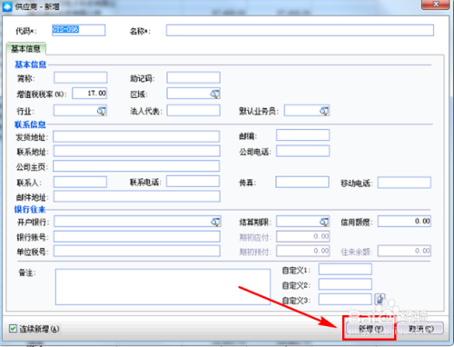 填写完当作后,点击窗口右下角的【新增】按钮,如许就完当作了新增供给商的操作了。