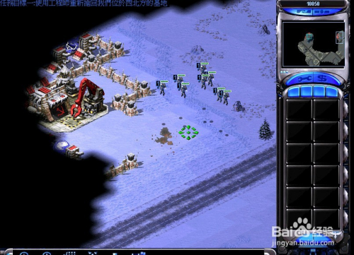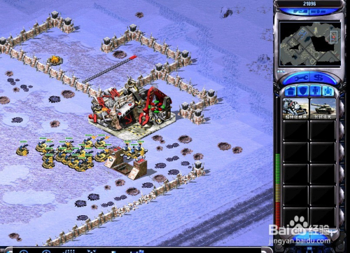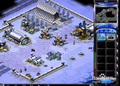 随后用声援的“火箭飞翔兵”绕到仇敌基地后方,先打失落仇敌的电厂,让仇敌基地断电