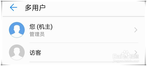 在“多用户”办理页面,点击“添加访客”可启用访客帐户,访客用户无法看到、利用本家儿用户后安装的应用。