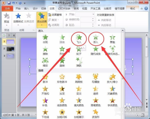选择飞入、浮入等简练的动画,切勿滥用动画。