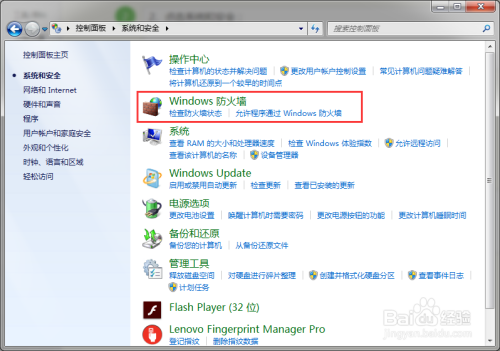 3、点击windows防火墙;
