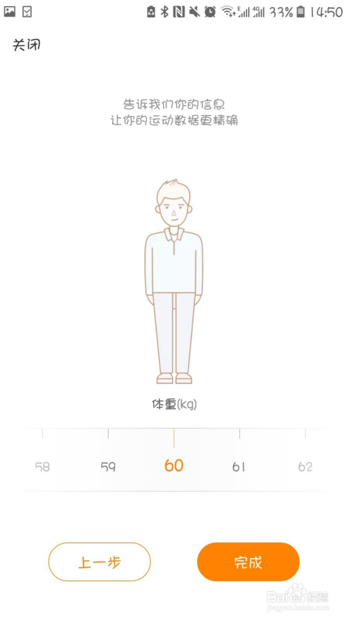 接着来到体重选项,我们按照现实环境进行选择,再点击【完当作】即可。这时辰设置微博活动信息设置完当作。