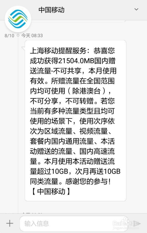 ①在用户账户中查看获奖环境,显示:残剩流量21GB,即为获取的流量数。