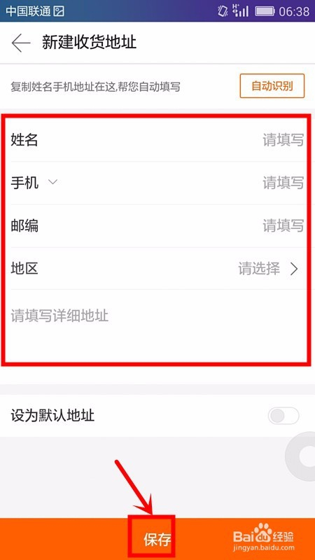 最后在新建收货地址页面中按照要求填写响应的信息后点击保留即可完当作新建收货地址的操作。