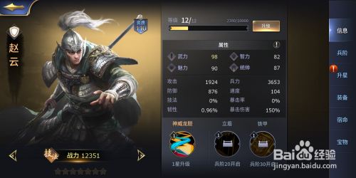 进级英雄是一种直接有用晋升战斗力的方式,英雄进级后其武力、魅力、智力、统率等属性会同时获得晋升。