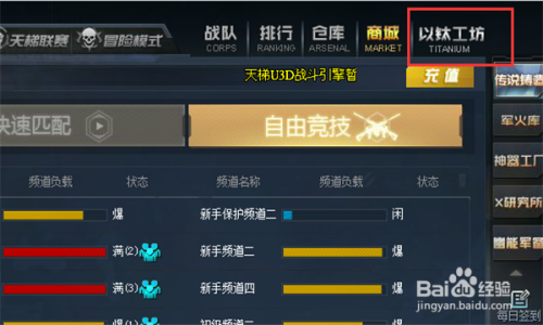 以钛工坊位于游戏年夜厅本家儿界面的最右上角,挨着【商城】系统,点进去。可以发现,是蓝色的布景,看起来十分空灵。