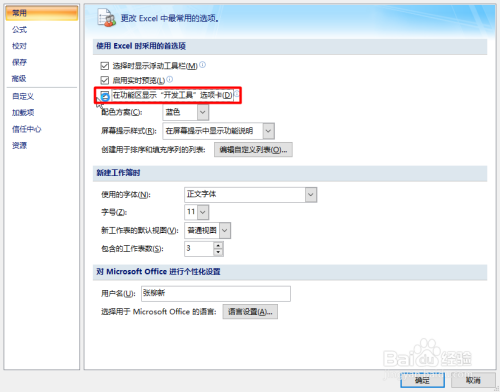 勾选”在功能区显示“开辟东西”选项卡“