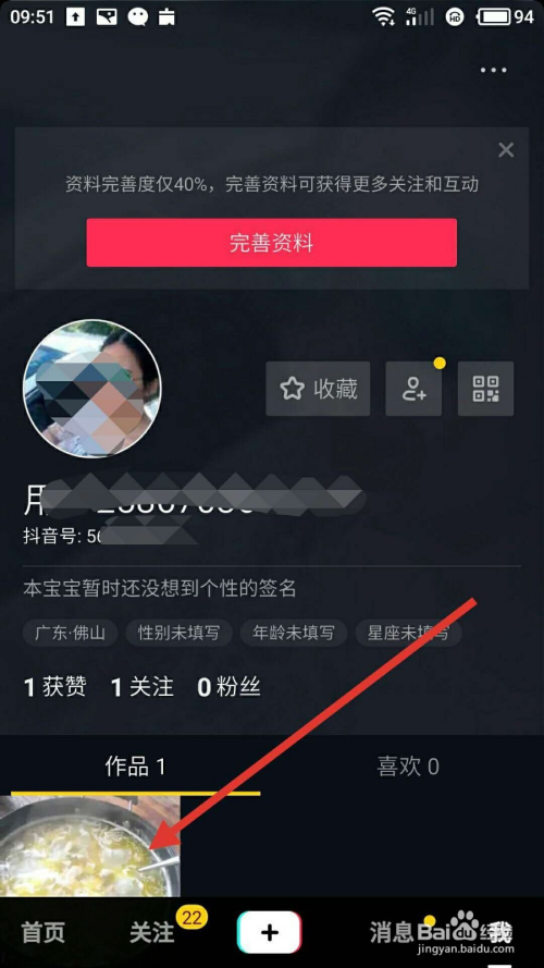 进入本身的小我页面,随意点开本身上传的抖音视频作品,如下图所示: