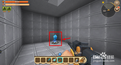 用东西将水晶座打坏可以或许获得宝石和图纸(内容不固定,有概率与已有图纸反复)。