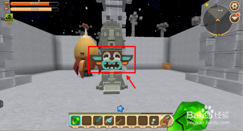 拿着星启石回到玛雅遗址,在遗迹中找到如下图所示的笑脸图腾;