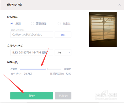 确认无误,点击右上角的保留按钮,在保留页面,可以摆布滑动显示画质,画质越高,占用存储越年夜,反之亦然。选好后点击保留即可。