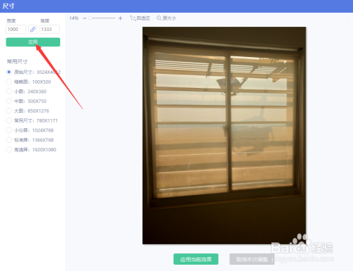 接着在尺寸页面,可以输入具体的像素值,也可以选择其他像素值,选好后点击应用。