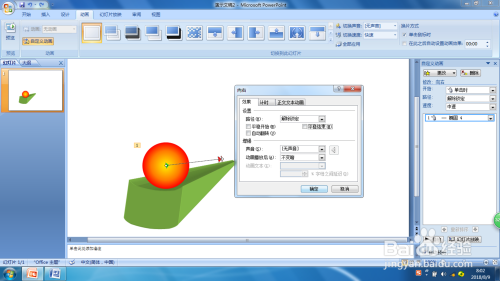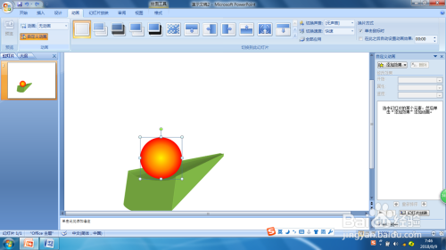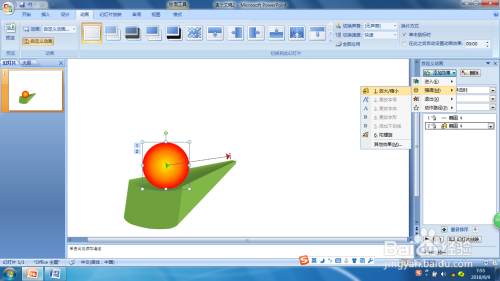 第二步:选中小球,单击“动画”选项卡,在“动画”组中单击“自界说动画”按钮。