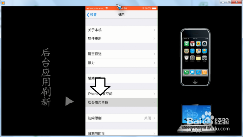 分享经验:设置→通用→后台应用刷新