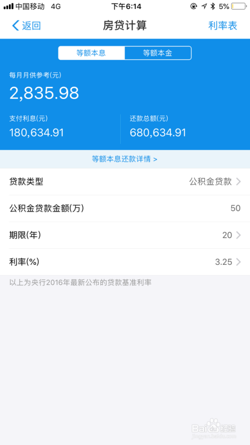输入房贷类型、贷条目金额、贷条目刻日,就会主动计较出每月月供和还条目总额了。