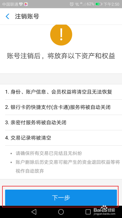 刊出账号页面主动打开,并提醒刊出账号带来的风险,在确定要刊出账号的环境下,请点击下一步;