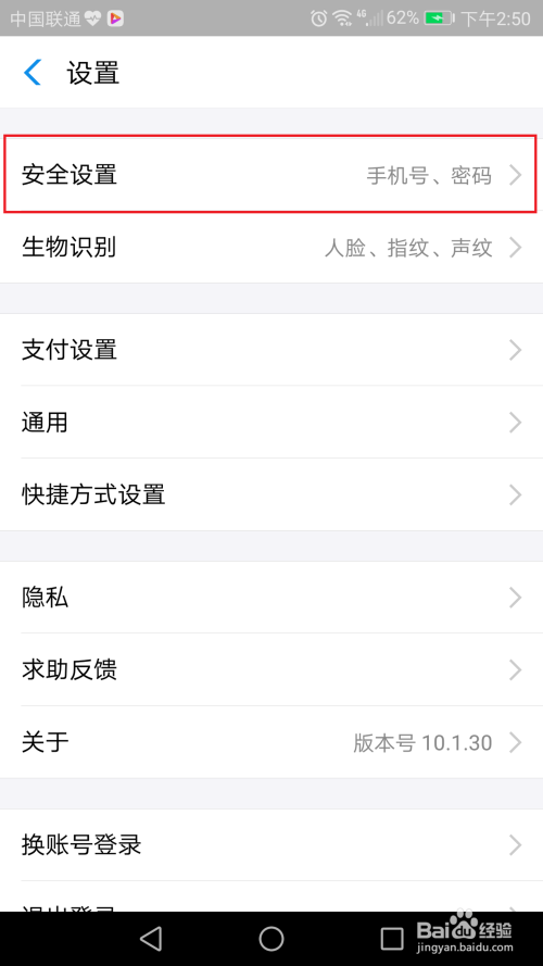 点击设置界面中的“平安设置”按钮;