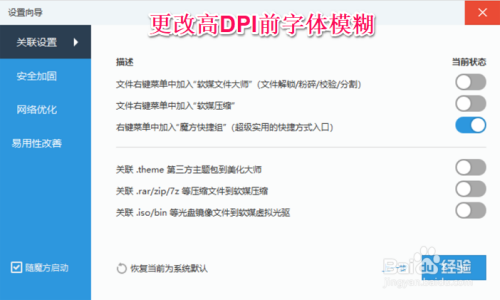 如:软媒魔方软件,更改高 DPI 前字体恍惚;