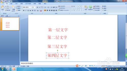 第一步:打开PPT2007,插入文本框,设置字体、字号、字体颜色等,然后输入文字。
