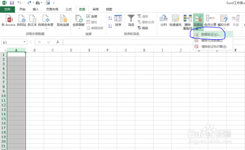 单击数据验证号令的下列菜单按钮,鄙人列菜单中选择数据验证号令。