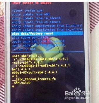 3、然后用音量加减键选择wipe data/factory reset,按开机键确认;
