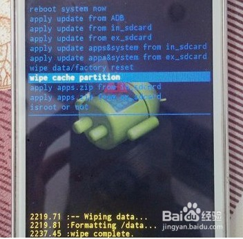 5、进入断根步调后,期待大要一分钟摆布。有些手机遇慢一点。然后弹出recovery模式最初界面;