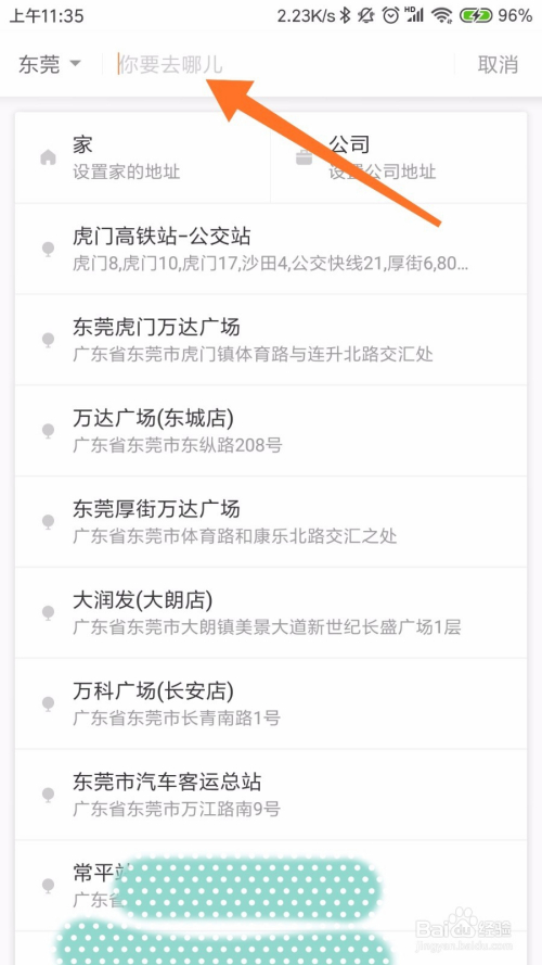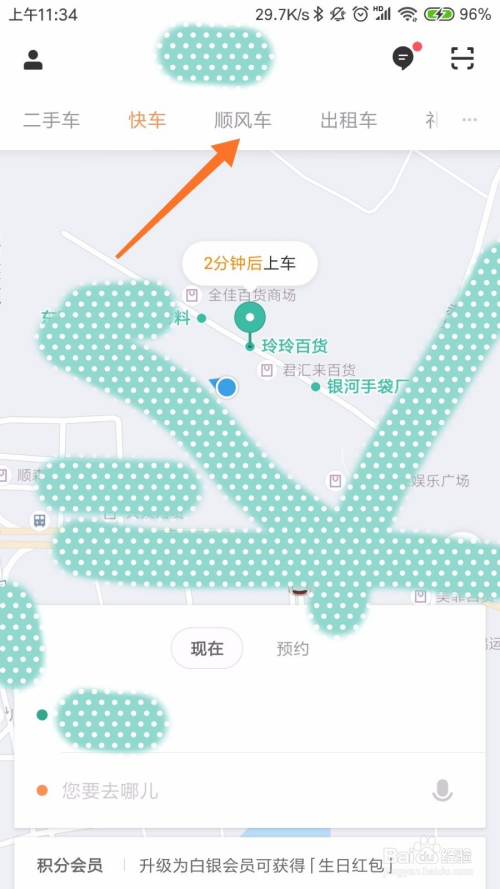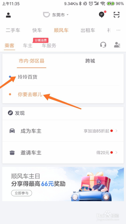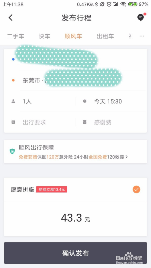 点击顺风车今后,首先需要选择本身的出发地址和目标地,这两个地址要切确,不克不及弄错,如下图所示