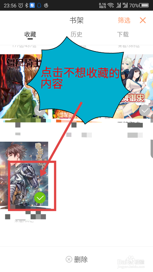 选择不想保藏的漫画,点击一下,漫画上的√图标会变亮。如图所示