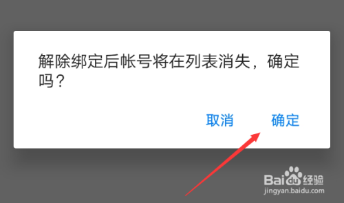 提醒扣问是否解除绑定该账号,点击确定按钮。